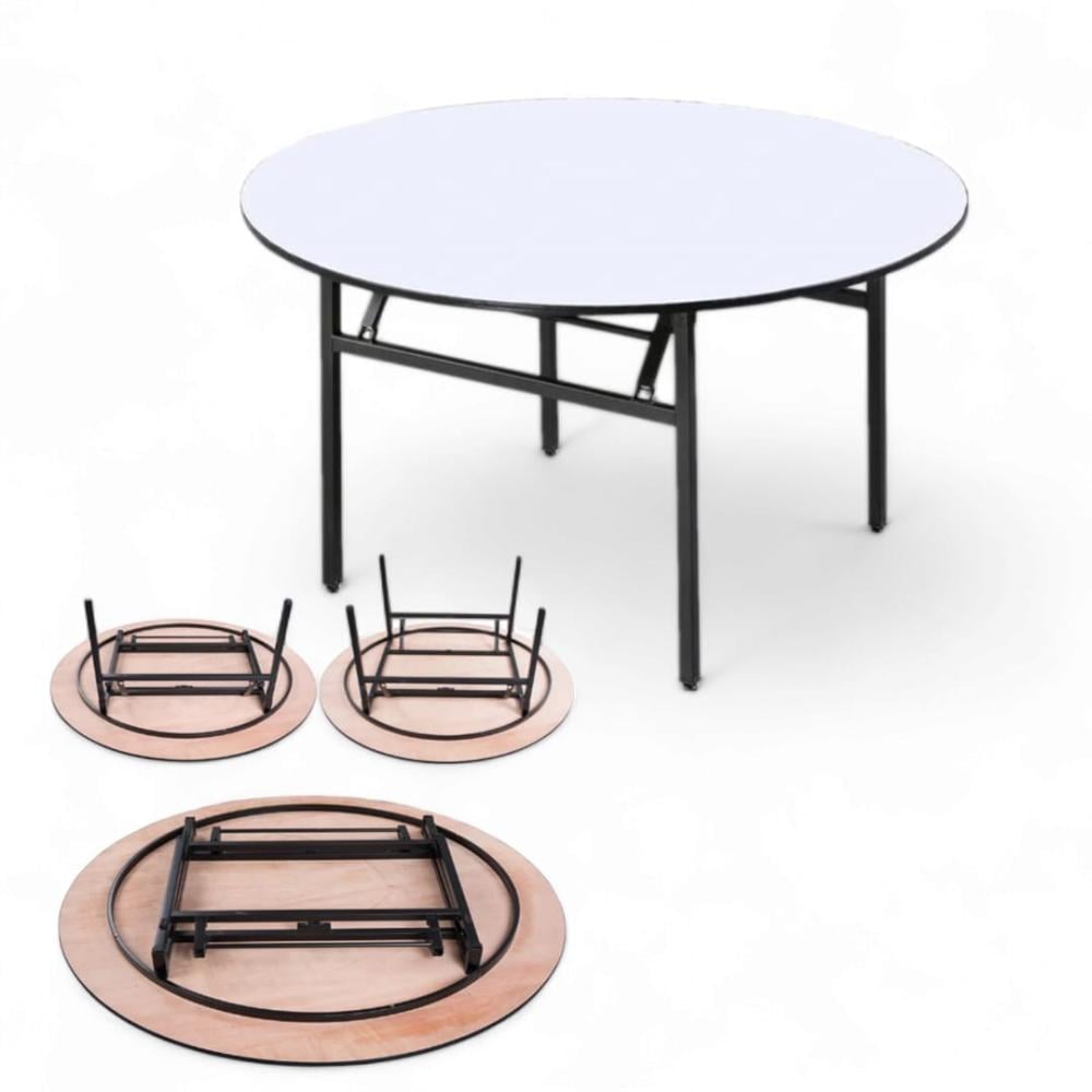 "طاولة أفراح أنيقة مصنوعة من سطح خشبي متين وقاعدة حديدية صلبة، مثالية للمناسبات والاحتفالات.