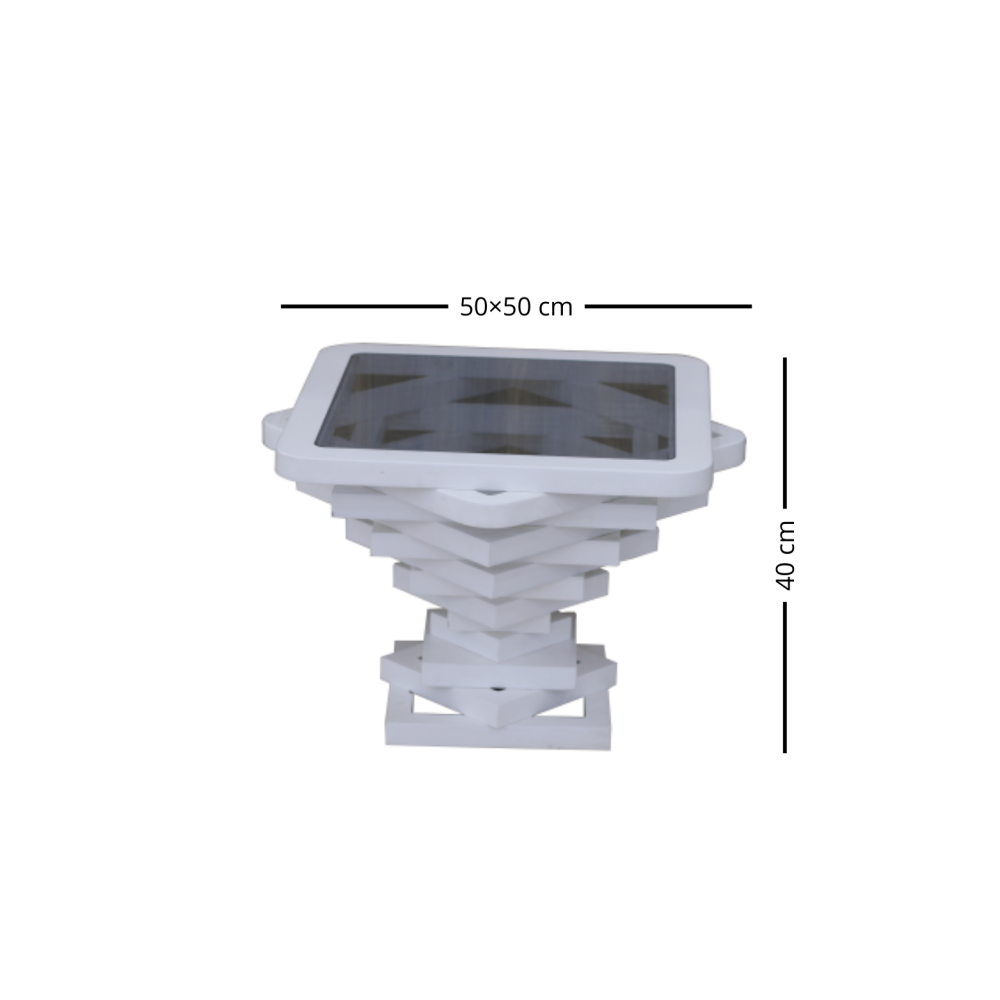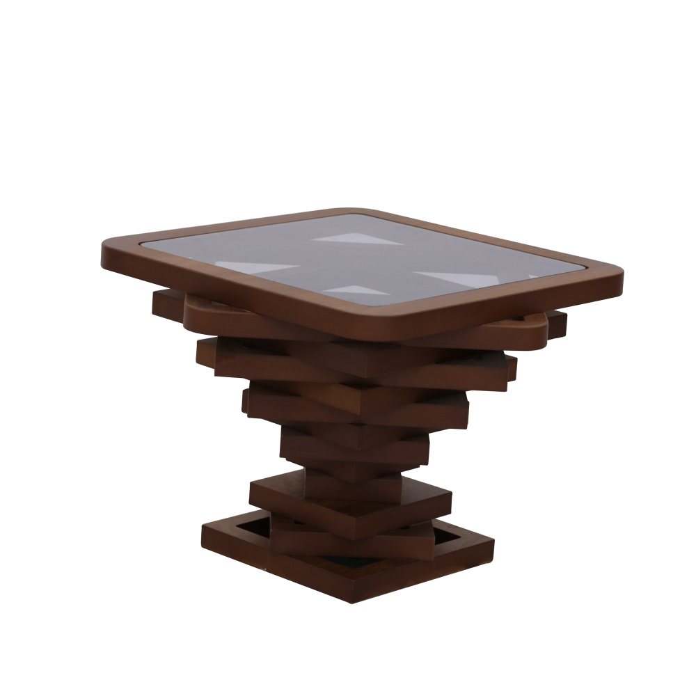 تتميز هذه الطاولة بتصميم مربع الشكل، مما يجعلها قطعة مميزة في أي مكان توضع فيه. مصنوعة من الخشب الفاخر مع سطح زجاجي يضيف لمسة من الأناقة والفخامة.