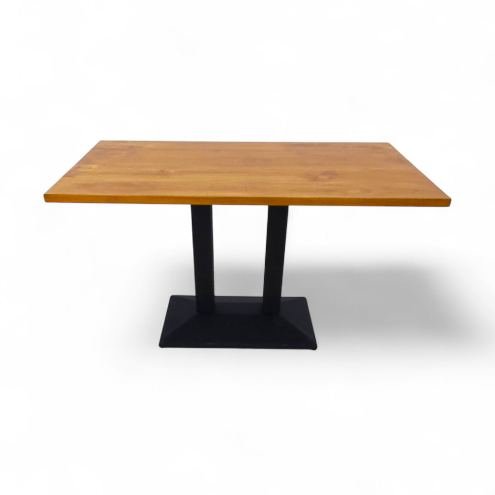 طاولة مطاعم مستطيلة بتصميم أنيق يجمع بين المظهر الكلاسيكي والصلابة العملية. تأتي بسطح خشب طبيعي بلون خشبي دافئ يضفي لمسة من الجمال الطبيعي، مع قاعدة حديد قوية توفر ثباتاً ومتانة عالية. مثالية للاستخدام في المطاعم والمقاهي التي تبحث عن توازن بين الأناقة والوظيفة.