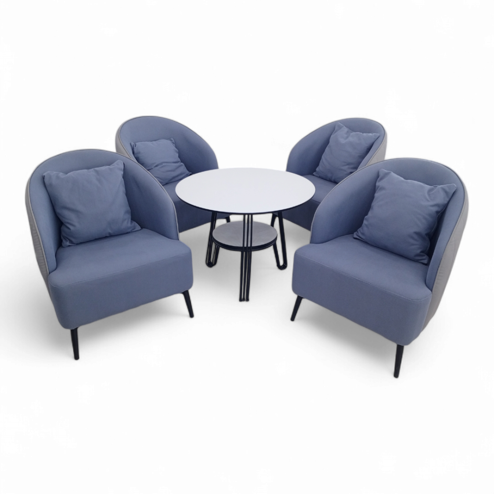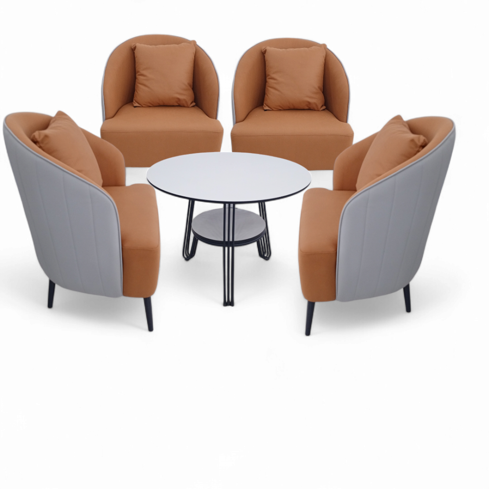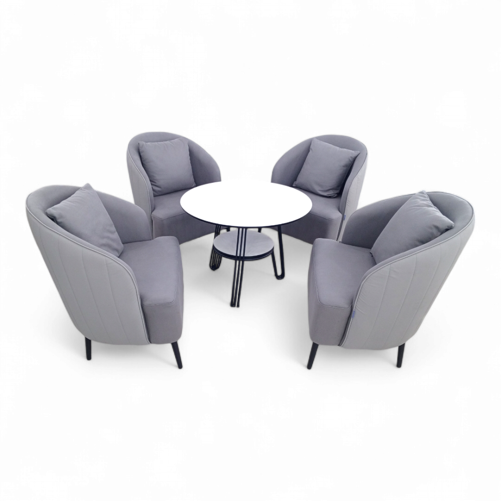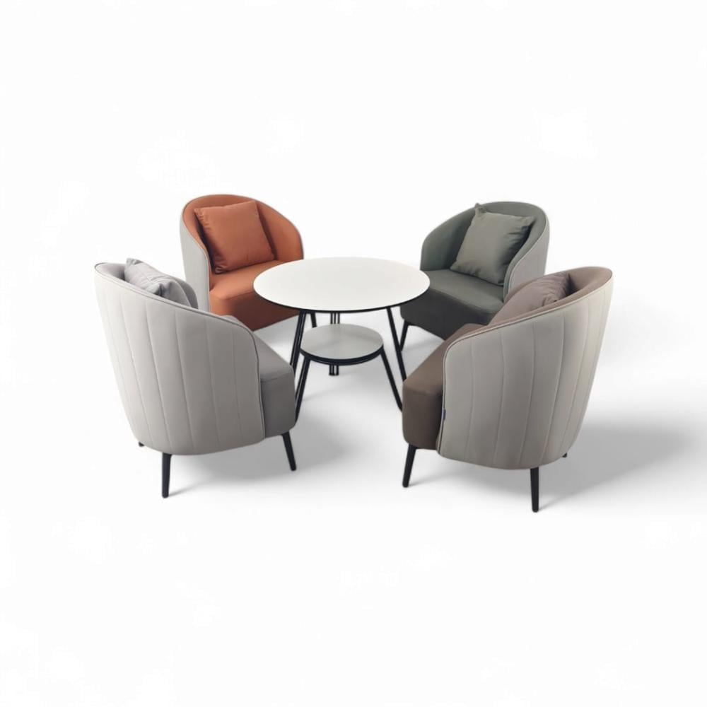 جلسة استراحة كافيهات استمتع بأوقات الاسترخاء مع احبابك في هذه الجلسة الانيقة والعصرية , تتكون هذه الجلسة من 4 كراسي وطاولة دائرية , مريحة جدا في الاستخدام بينما توفر الوسائد المريحة اقصى درجات الراحة كما انها تضفي لمسة رائعة وجذابة للمساحة حيث انها صنعت بالوان عديدة لتناسب هذه الجلسة مع جميع الديكورات
