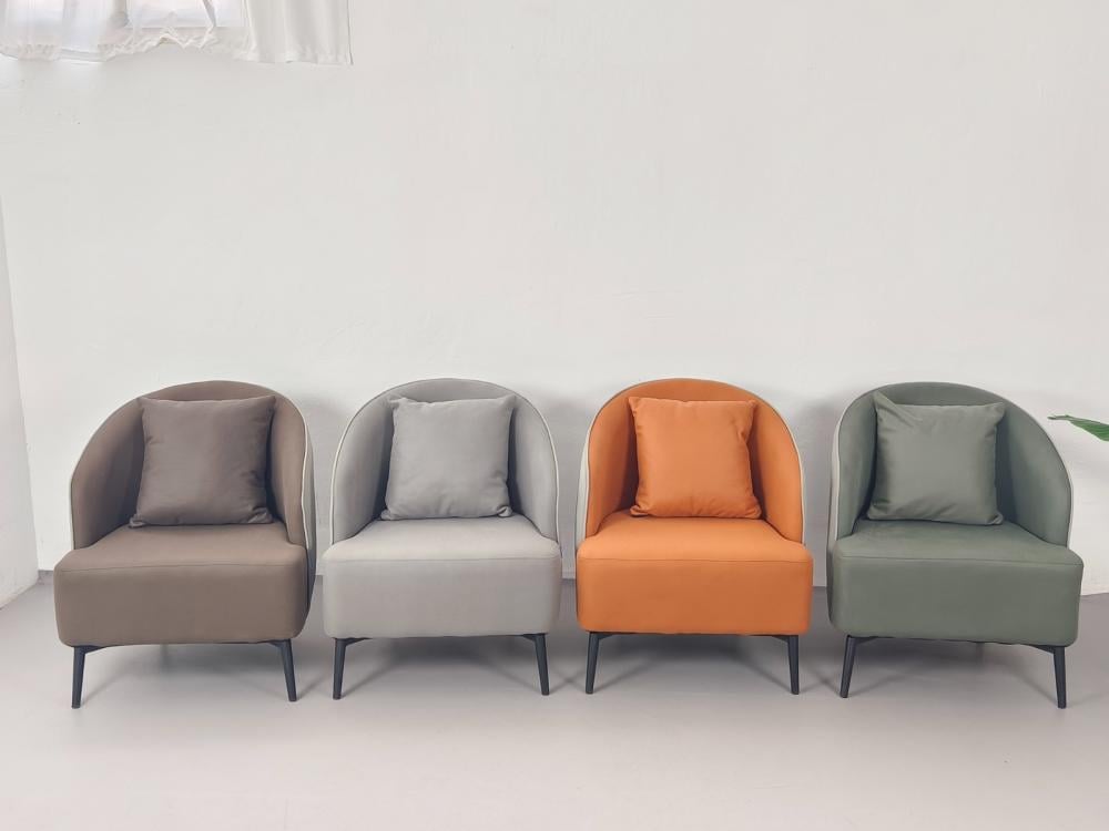 - كرسي قاعدة معدن على قماش شمواة بخلفية جلد