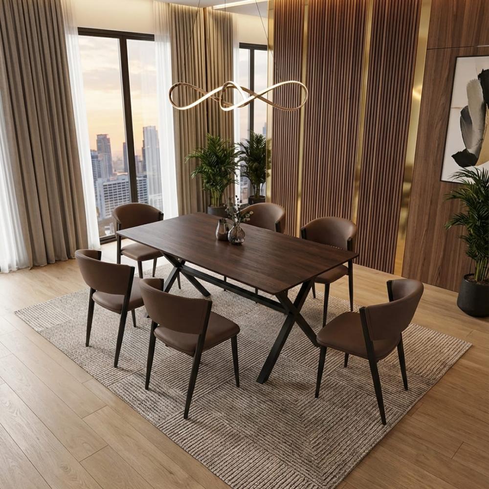 مكون من 6كرسي جلد على حديد