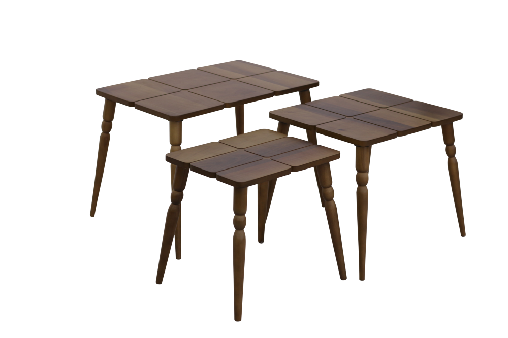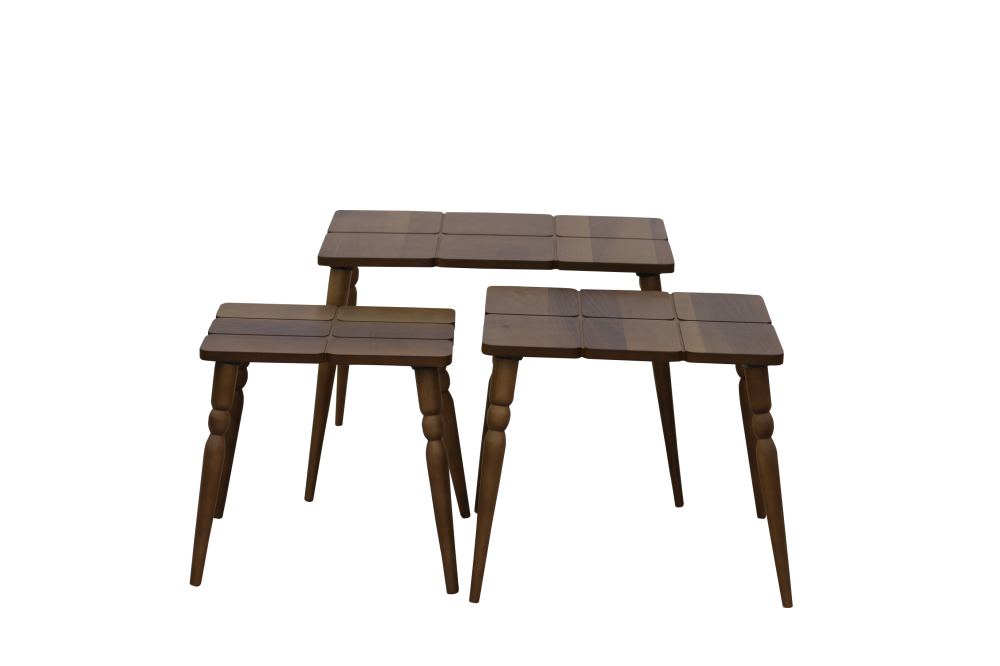 • طقم طاولات خشبية متعددة الاستخدامات. يمكن استخدامها كطاولة خدمة او طاولة كوفي. الطقم عبارة عن 3 قطع : كبيرة ومتوسطة وصغيرة.