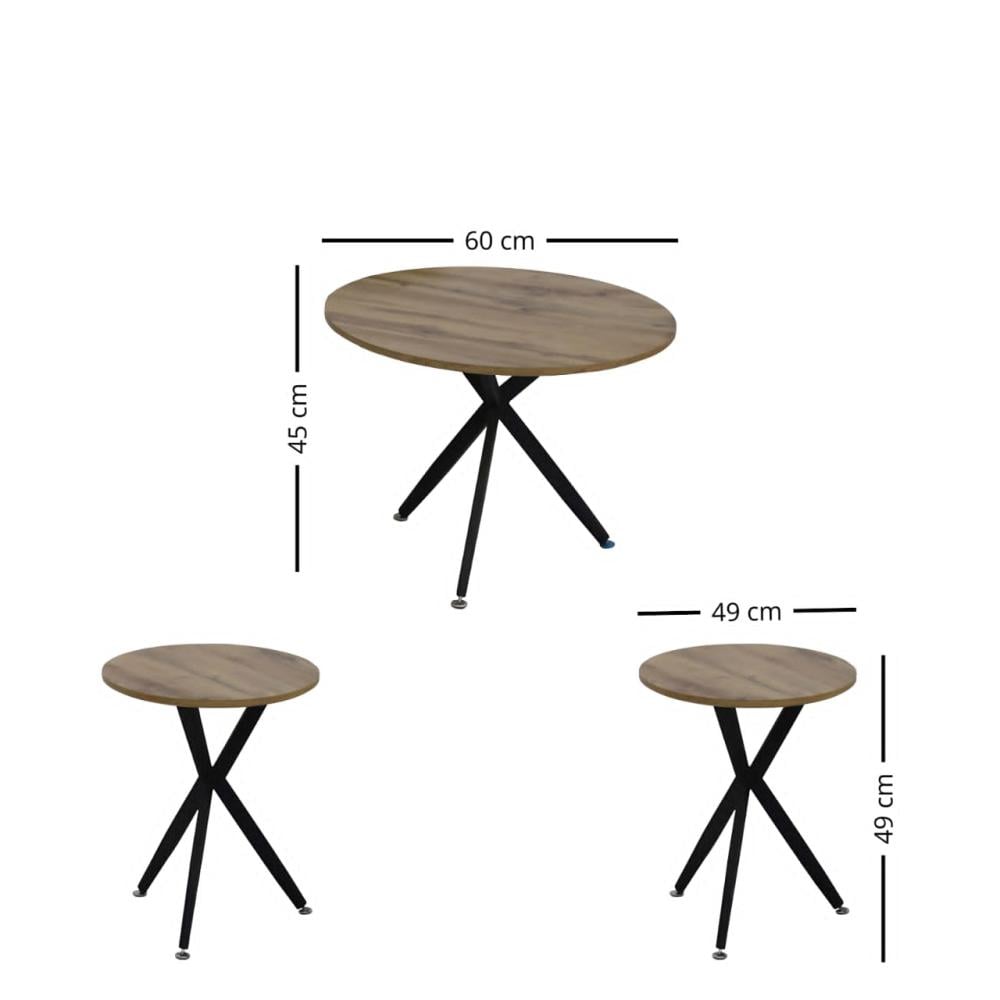 • يتألف الطقم من ثلاث طاولات خدمة بأحجام مختلفة، مما يوفر مرونة في الاستخدام والتخزين.