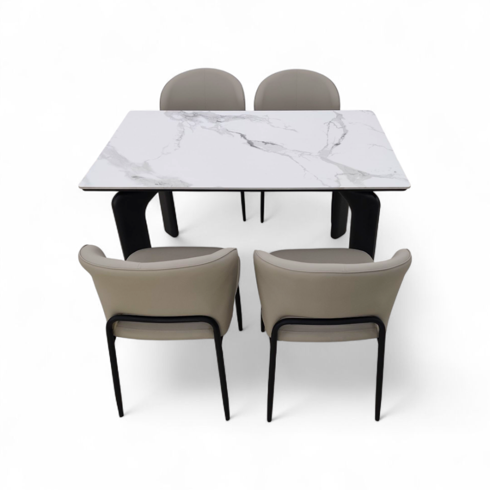 طقم طاولة طعام مع 4 كراسي طاولة سطح بورسلان وكراسي جلد