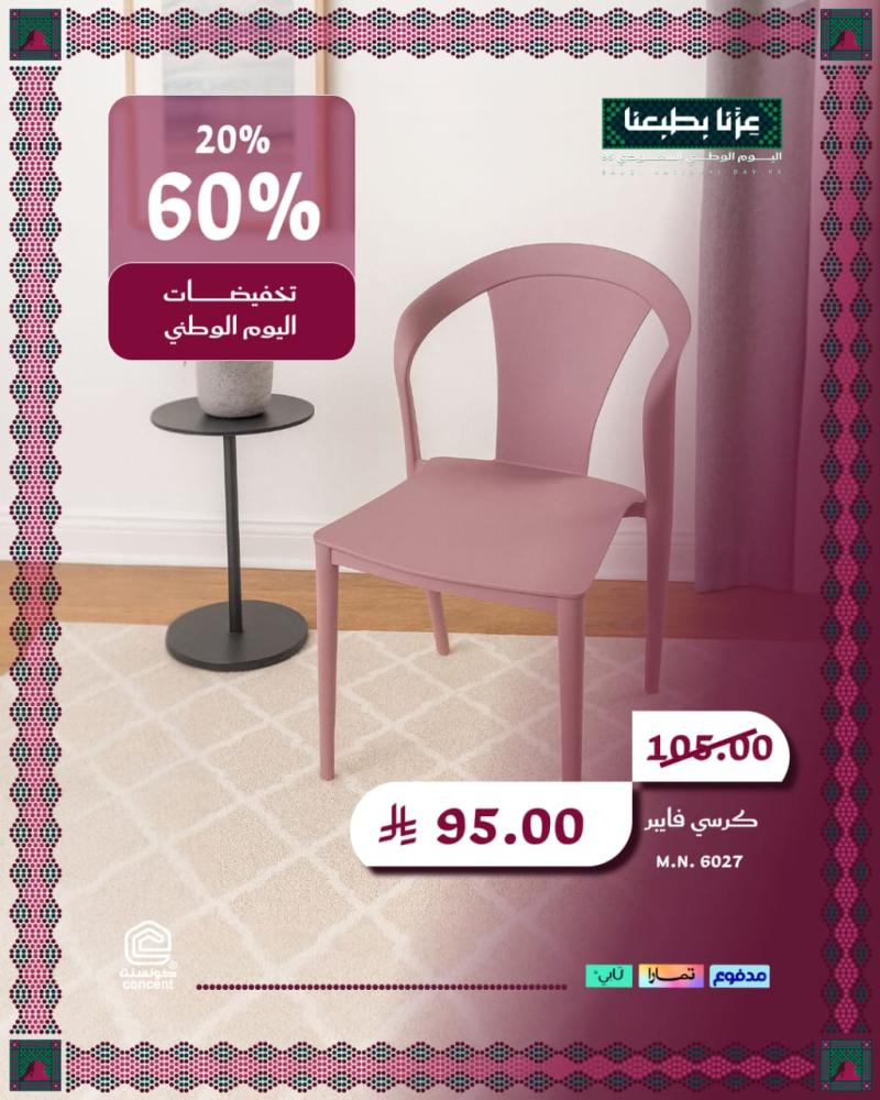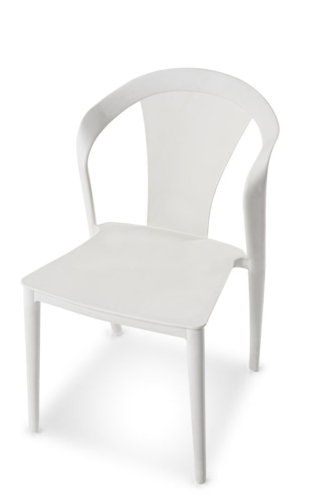 - كرسي انتظار مصنوع من البلاستيك ابيض اللون, بمسند ذراع لراحة اكبر. يمكن استخدامه فالحدائق والمنازل. متوفر باللون الوردي و الابيض