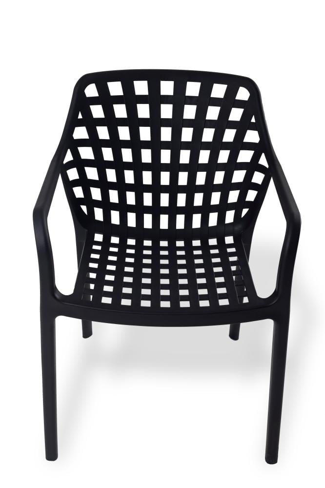 كرسي بلاستيك اسود اللون. الكرسي البلاستيكي عملي ومتعدد الاستخدامات ومناسب للاستخدام الداخلي والخارجي أو في المنزل أو في المقاهي أو في المكتب. الكرسي مصنوع من مواد عالية الجودة تتحمل الظروف الجوية المختلفة وسهلة التنظيف.