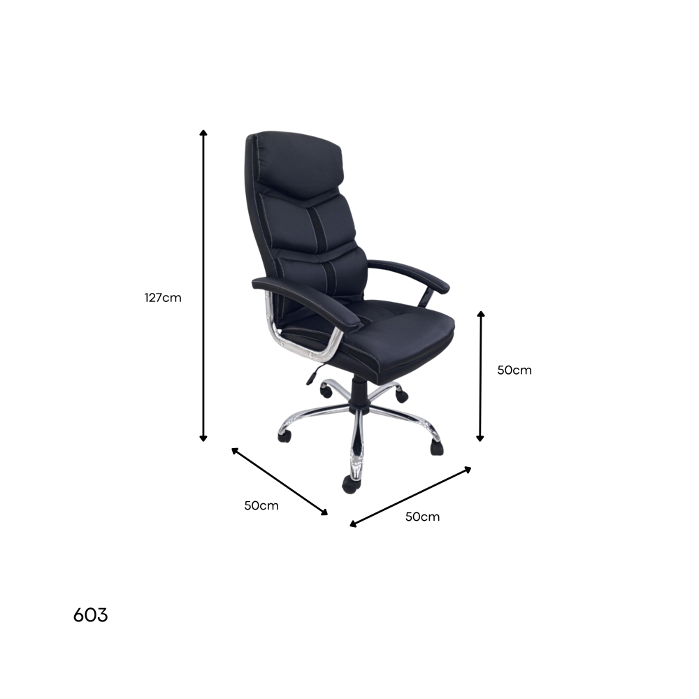 الكرسي يأتي بمقعد وظهر مبطنين لدعم الراحة أثناء الجلوس لفترات طويلة، ويمكن أن يحتوي على مساند للذراعين وميزات تعديل الارتفاع وإمالة الظهر لتعزيز الراحة والإنتاجية.