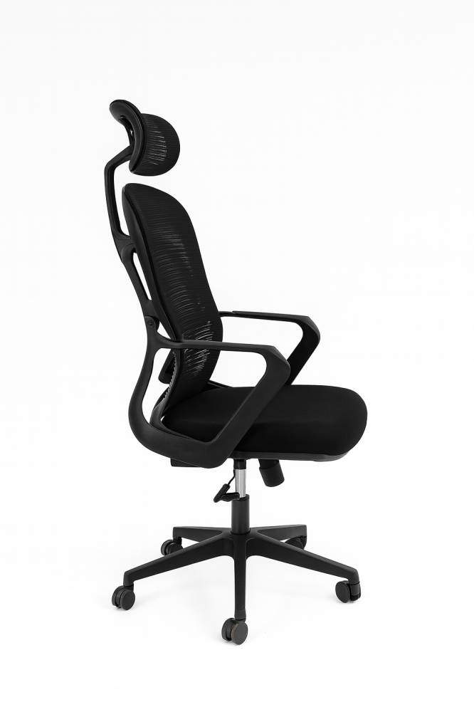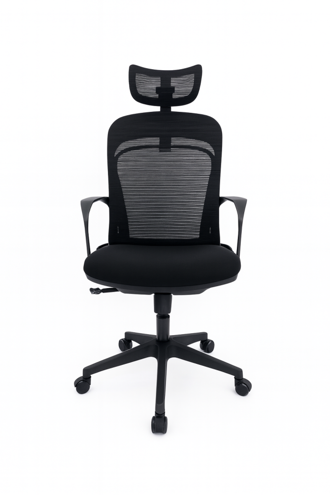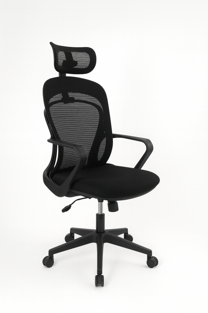 مصنوع من خامة شبكية عالية الجودة تسمح بمرور الهواء وتوفر تهوية ممتازة للظهر، مع دعم لمنطقة أسفل الظهر لتحسين وضعية الجلوس وتقليل الإجهاد أثناء العمل الطويل.