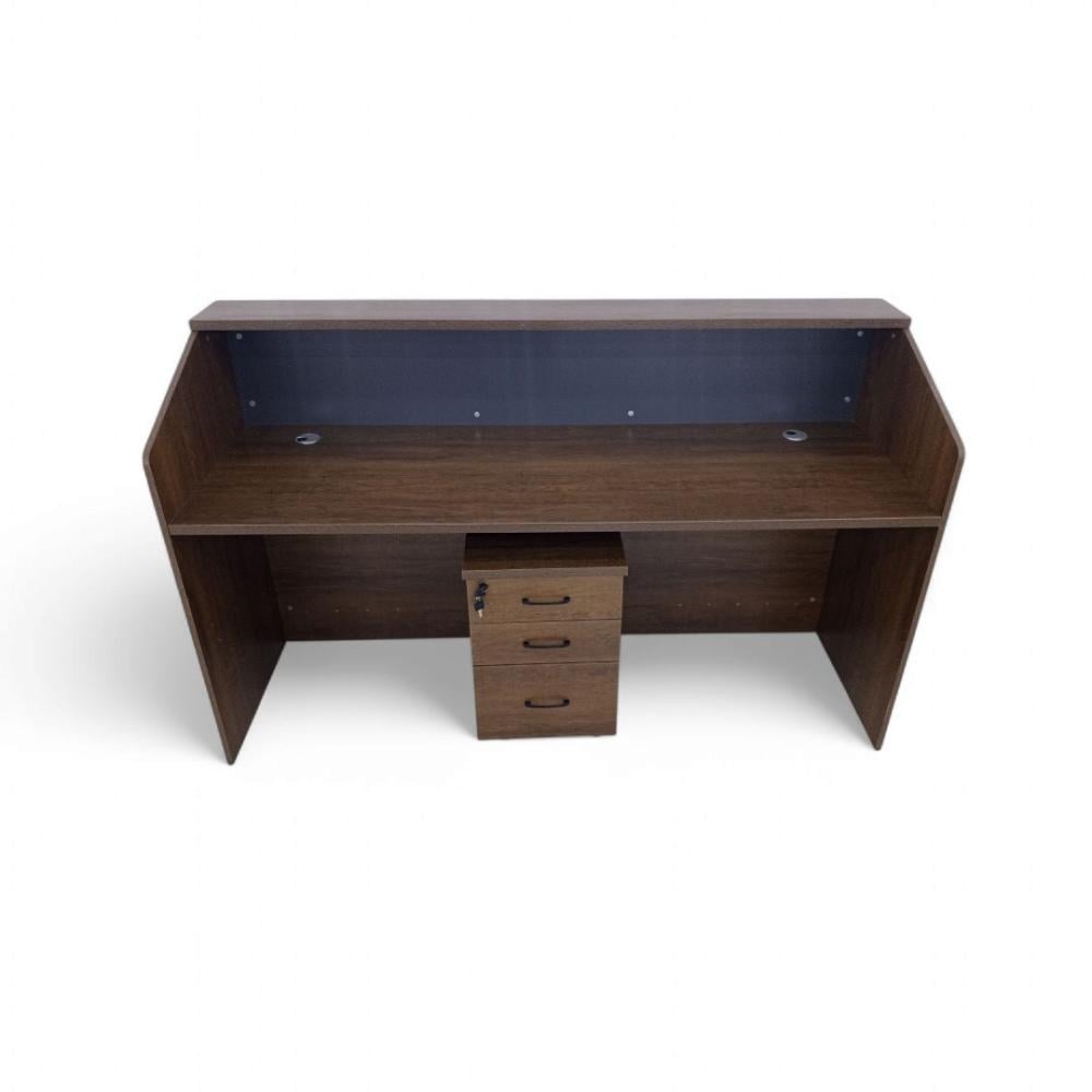 🔹 كونتر استقبال خشبي مع أدراج يوفر لك مساحة تخزين عملية لتنظيم الملفات والأدوات.