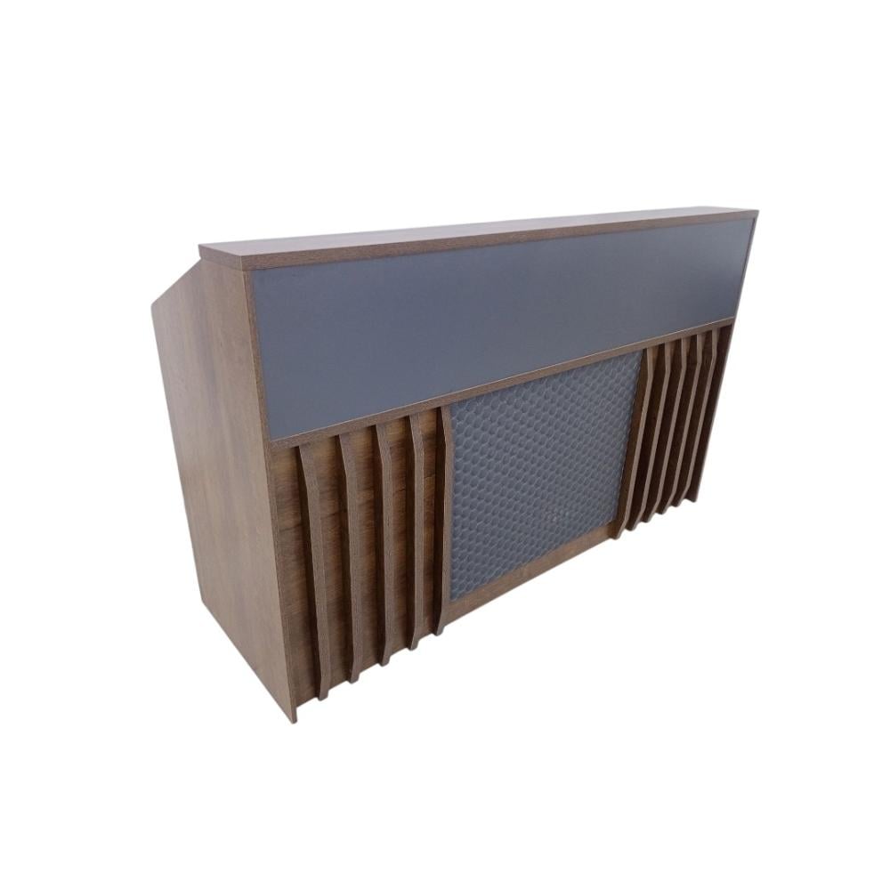 🔹 كونتر استقبال خشبي بلون بني ورمادي يمنحك طابعًا احترافيًا وأنيقًا.