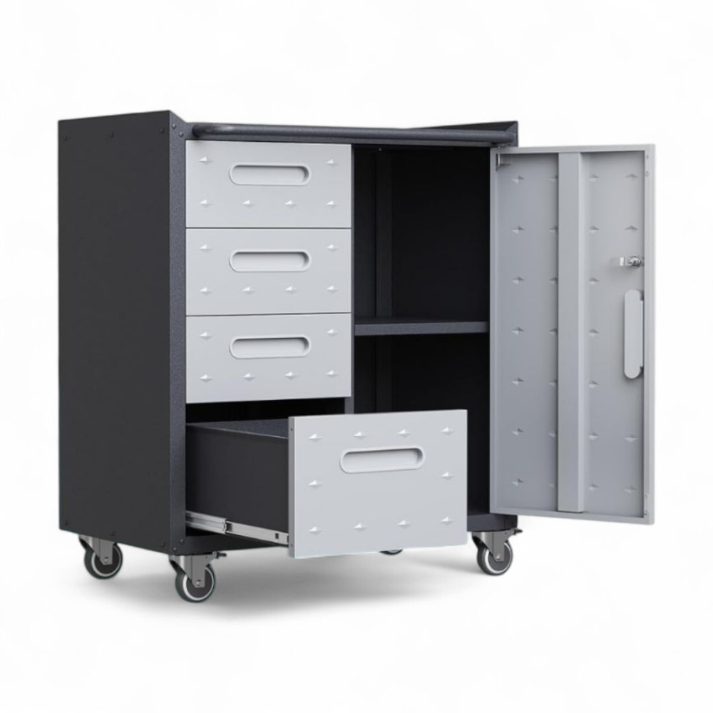 اجعل تنظيم أدواتك أكثر سهولة مع عربة حفظ الأدوات المتحركة المصنوعة من الحديد القوي بلون أنيق رصاصي على رمادي. تأتي بمقاس الطول 74 سم، العرض/العمق 42 سم، الارتفاع 78 سم، مما يجعلها عملية وملائمة للاستخدام في المنازل، المكاتب، المستشفيات، الورش أو المحلات. مزودة بكفرات متينة للحركة السلسة، وتتميز بتصميم متين يضمن التحمل وسهولة النقل بين الأماكن.