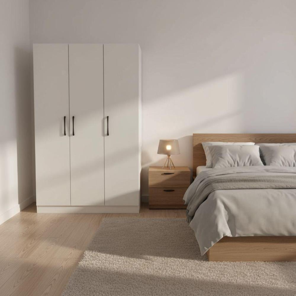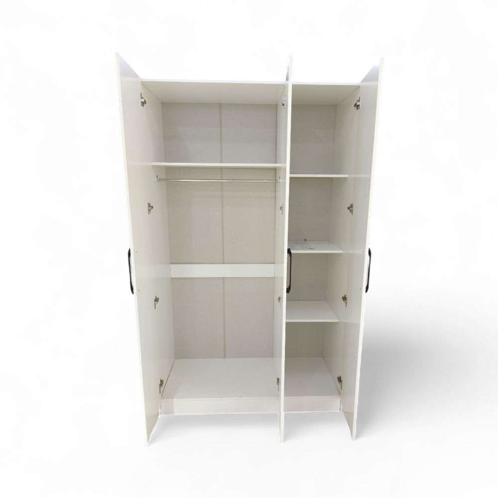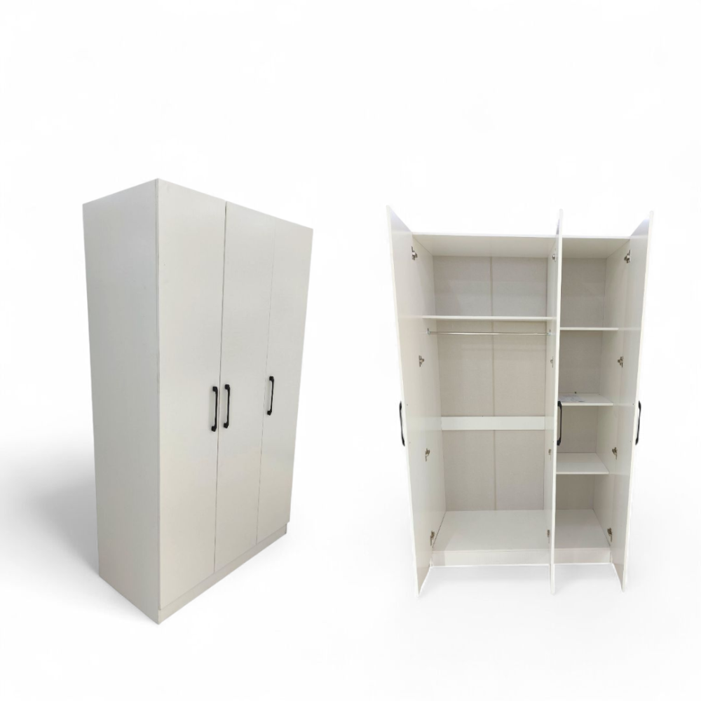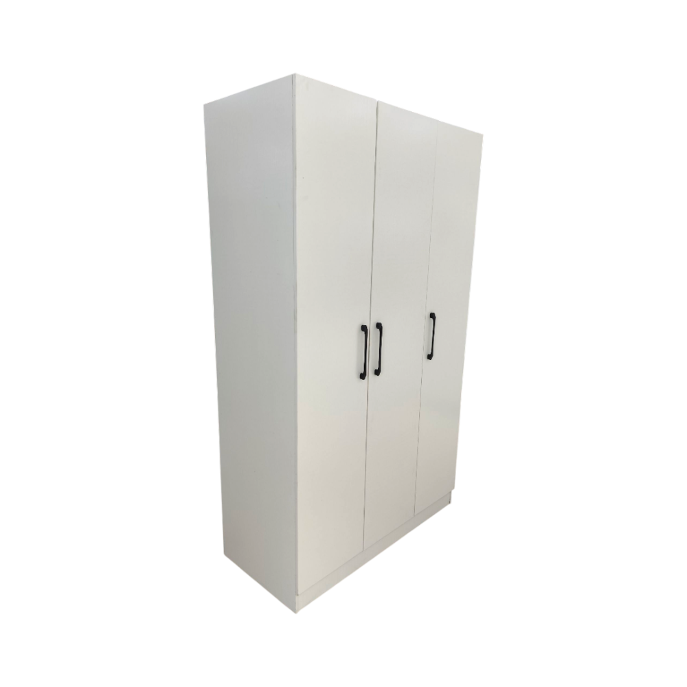 دولاب ملابس خشب MDF أنيق بثلاث درف بلون أبيض عصري، يتميز بتصميم عملي يضمن لك تخزين الملابس والأغراض بشكل مرتب ومنظم. بفضل أبعاده الكبيرة، يوفر مساحة واسعة تناسب الاستخدام اليومي في غرف النوم أو غرف التخزين.