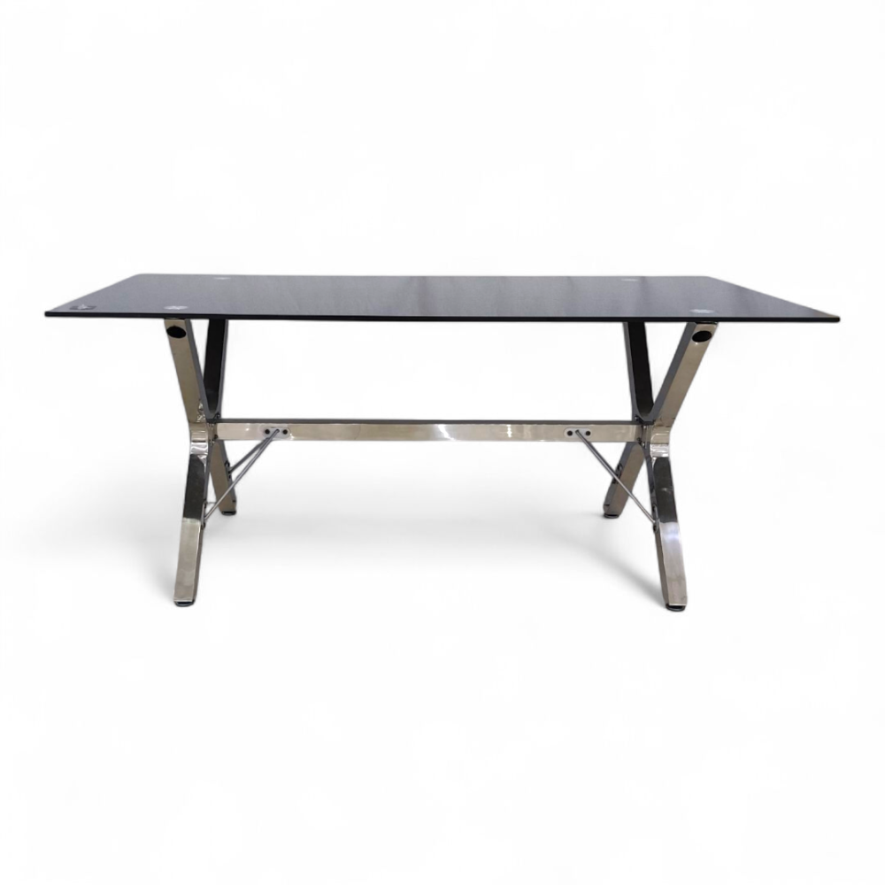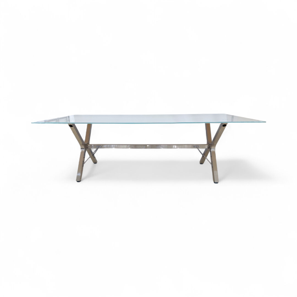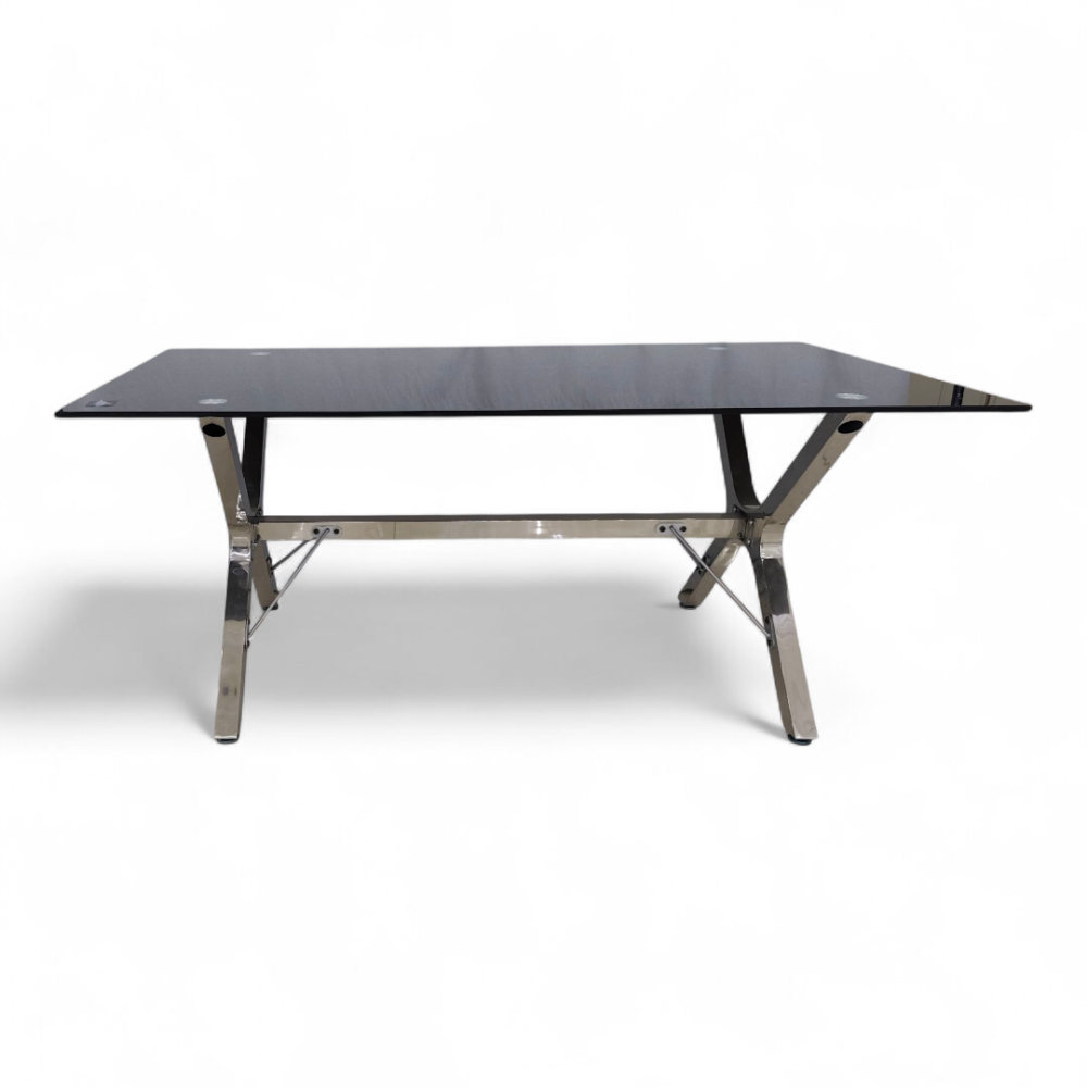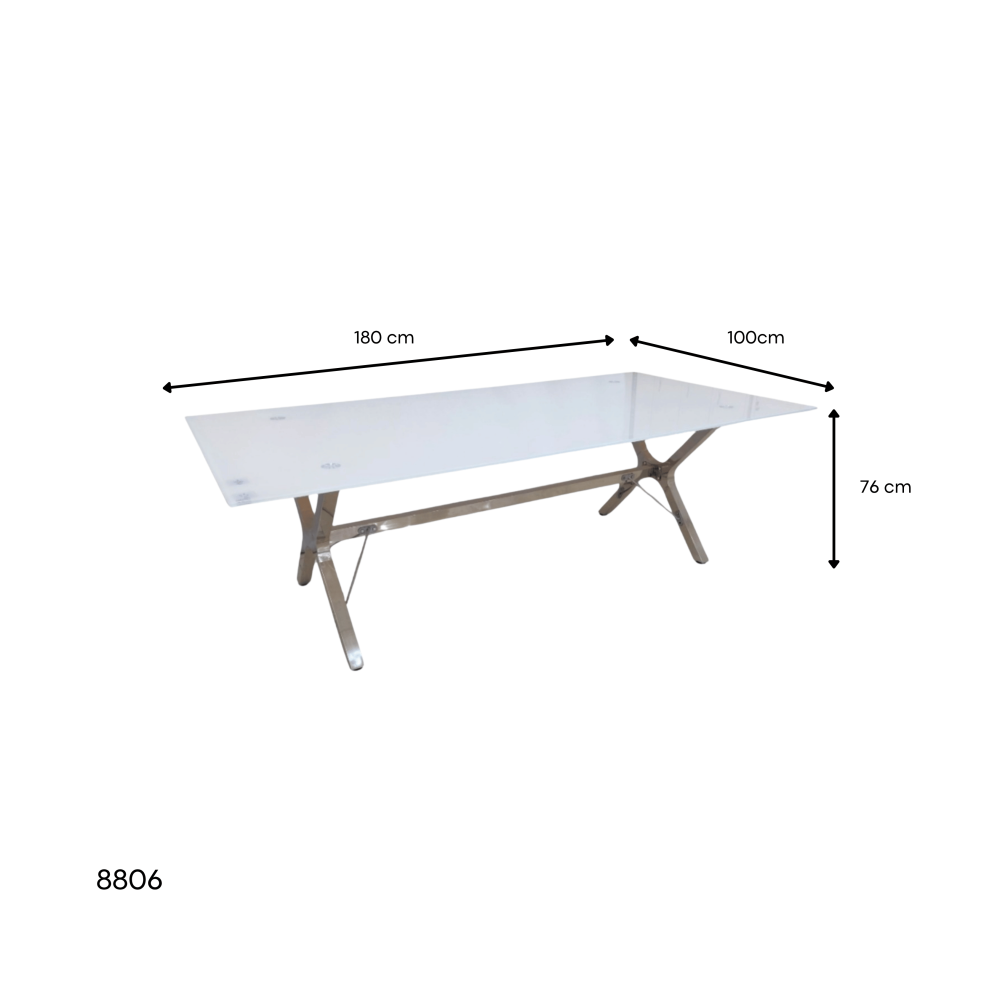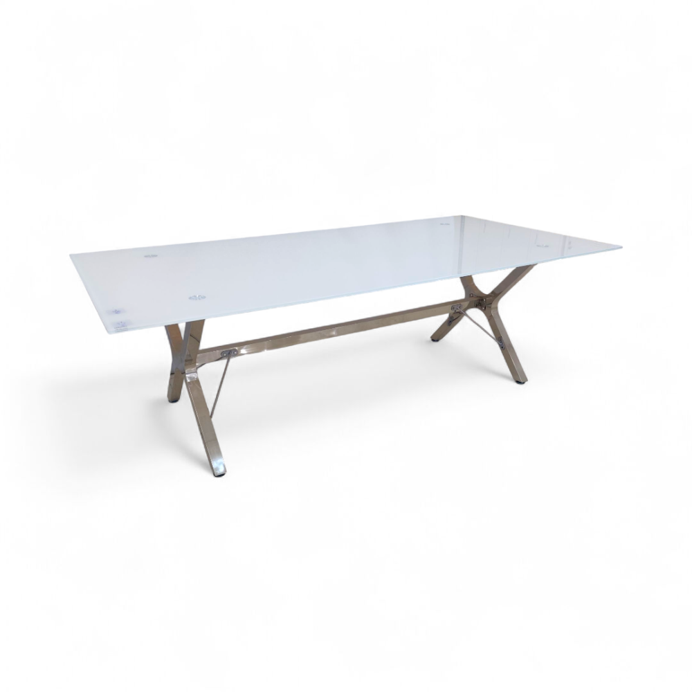 طاولة اجتماعات فاخرة بسطح قزاز وقاعدة حديد – من كونسنت