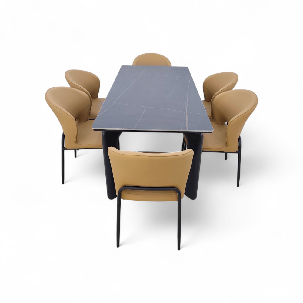 طقم طاولة طعام مع 6 كراسي سطح بورسلان فاخر