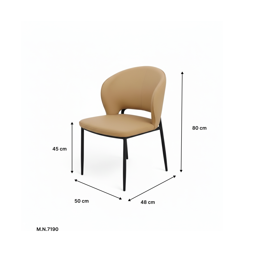 - مقاس الكرسي: الجلسة 50 سم × العرض 48 سم × الارتفاع الكلي 80 سم × ارتفاع الجلسة 45 سم.