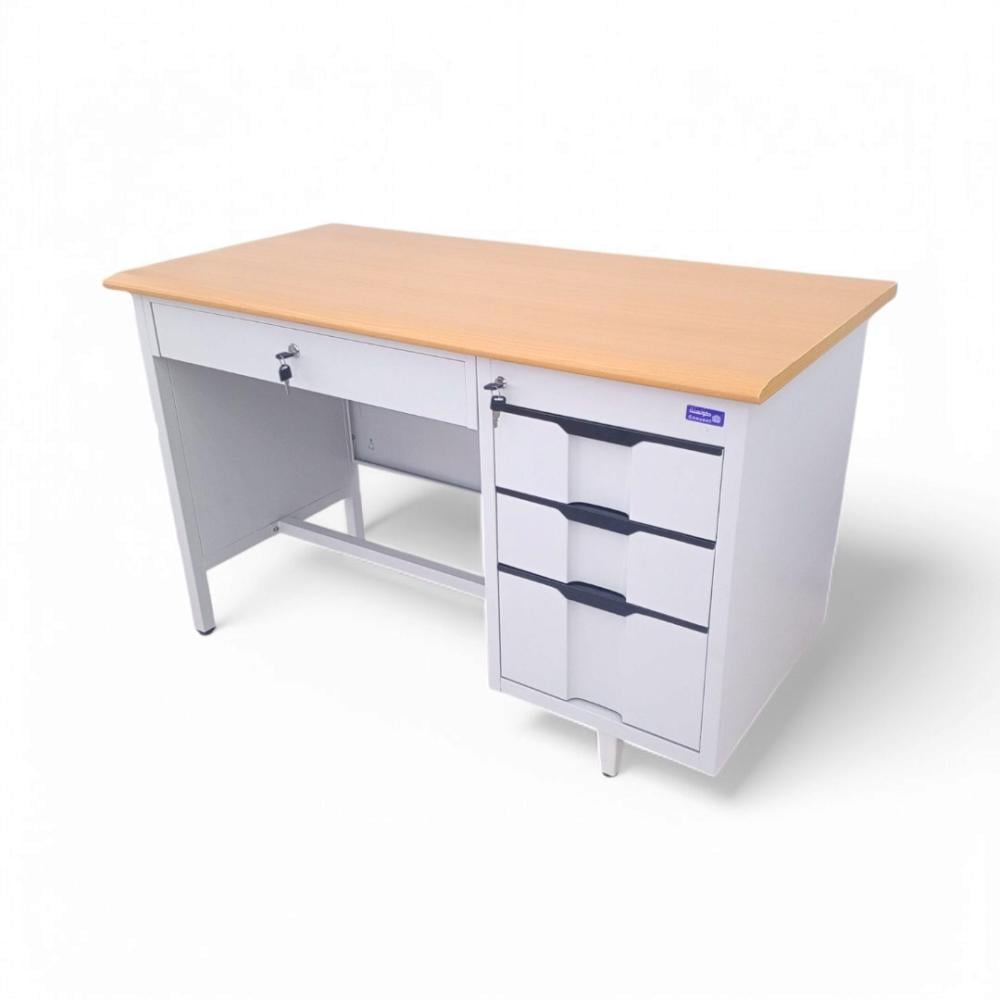مكتب عمل بأدراج - سطح خشب وهيكل حديد رمادي بدرج سحاب