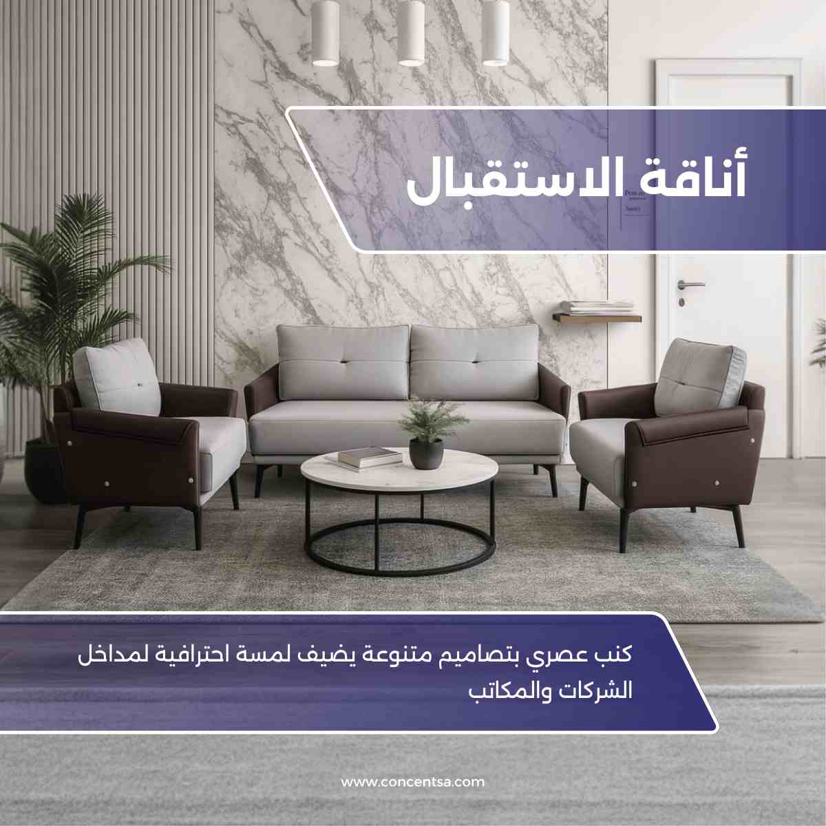 • الانطباع الأول يدوم: تُعد منطقة الاستقبال أول ما يراه عملاؤك وزوارك. تصميم كنب غرف استقبال أنيق ومريح يُعطي انطباعًا بالاحترافية، الاهتمام بالتفاصيل، والرقي.